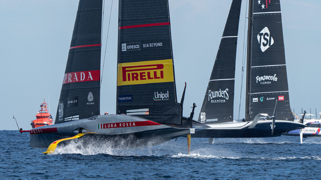 Det står 4-1 i matchen mellan Ineos Britannia och Alinghi. Det är två vinster som gäller för Schweiz i RACE 6 och 7. Spänningen är olidlig. Foto: 37 America’s Cup