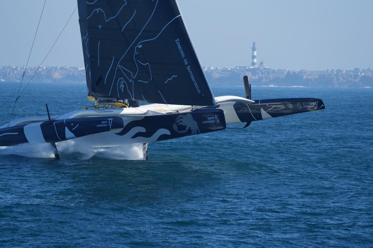 Gitana Team ombord Maxi Edmond de Rothschild med skeppare Franck Cammas och Charles Caudrelier. Foto: www.tropheejulesverne.org