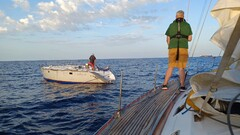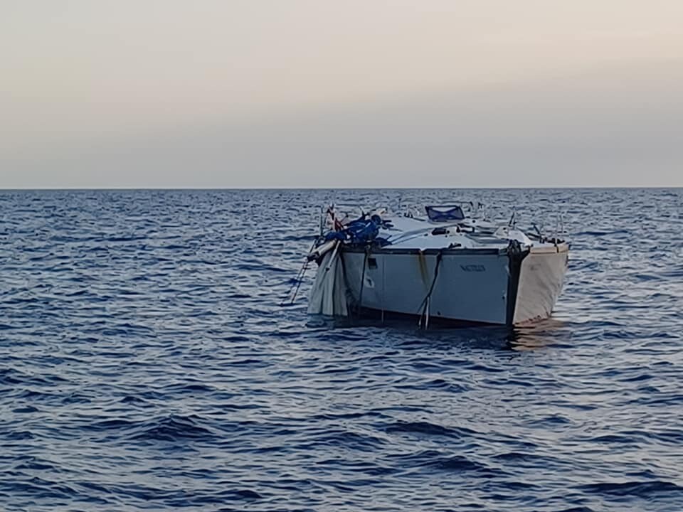 För en vecka sedan när Erik Kiekens och hans kompisar seglade över Joniska havet blev de tillfrågade av MRCC att segla förbi en övergiven båt. Sagt och gjort, kompisgänget kom fram till en herrelös Jeanneau 47:a vid namn Nautilus, utan vare sig mast eller ägare. Nu är vi såklart många som undrar vad det är som har hänt med båten samt var och vem ägaren är?