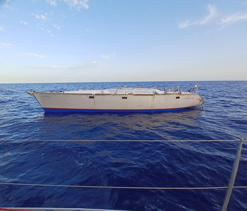 Nautilus - den övergivna Jeanneau 47:an utan vare sig mast eller ägare.