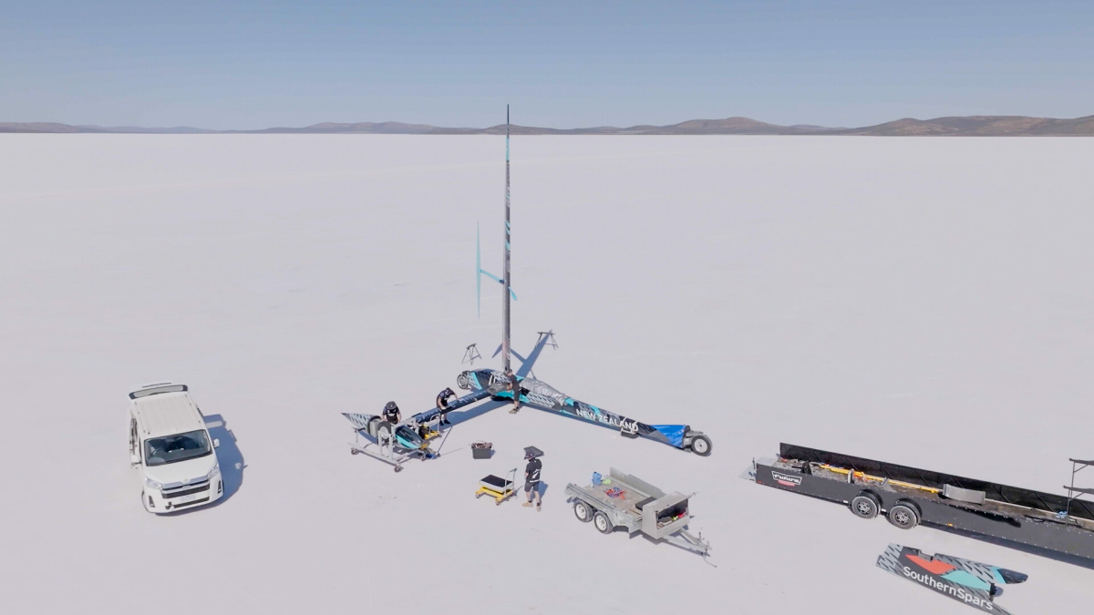 Teamets tålamod har testats rejält de senaste månaderna men nu är man äntligen igång. Landjakten Horonuku har fått pröva sina vingar på snustorra Lake Gairdner i vindar som ligger i den härad som krävs för att slå rekord.