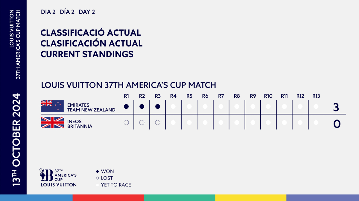 Två racedagar och tre vinster signerade Nya Zeeland. Är Emirates Team New Zealand överlägsna? Inte nödvändigtvis. Men de är snabba på vattnet samt stabila vad gäller både manövrar och taktik. Samtidigt har Ineos av olika skäl halkat efter redan vid starterna och Nya Zeeland har så här långt bevakat sin ledning väl och täppt till eventuella möjligheter för britterna. Och vi vet ju alla att det är svårt att prestera i sämre vind.