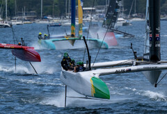 Australien seglar med självförtroende just nu och dominerade första tävlingsdagen på Sydney Harbour med två vinster, en tvåa och en trea vilket skickade laget upp i ledningen. Storbritannien och Frankrike lyckades också segla bra i de lika byiga som skiftande vindarna och ligger på andra respektive tredje plats. Andra lag som mycket väl kan ta sig till söndagens final är Schweiz och Danmark.