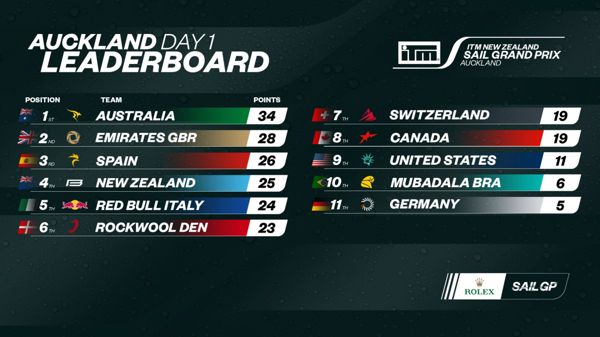 Efter fyra actionspäckade race på vattnet utanför Auckland ligger Tom Slingsby och hans Australien i topp före Storbritannien och Spanien. Med i matchen är dock också hemmalaget Nya Zeeland, Italien och Danmark.