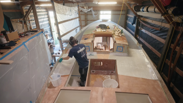 Det här paret sitter nästan aldrig stilla. Det var en sommar de seglade och njöt av Norden men annars är det ständiga projekt. Just nu jobbar de mot klockan under det senaste projektet. Aladinos visum går snart ut och båten han just nu bygger på kommer flyttas till Kanada. Till dess måste däcket bli klart.