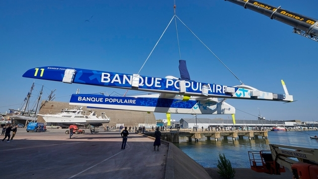 Då var den klar, i alla fall för sjösättning. Maxitrimaranen Banque Populaire XI håller tidtabellen och sjösattes enligt plan den 27 april i Lorients hamn (se klipp nedan).