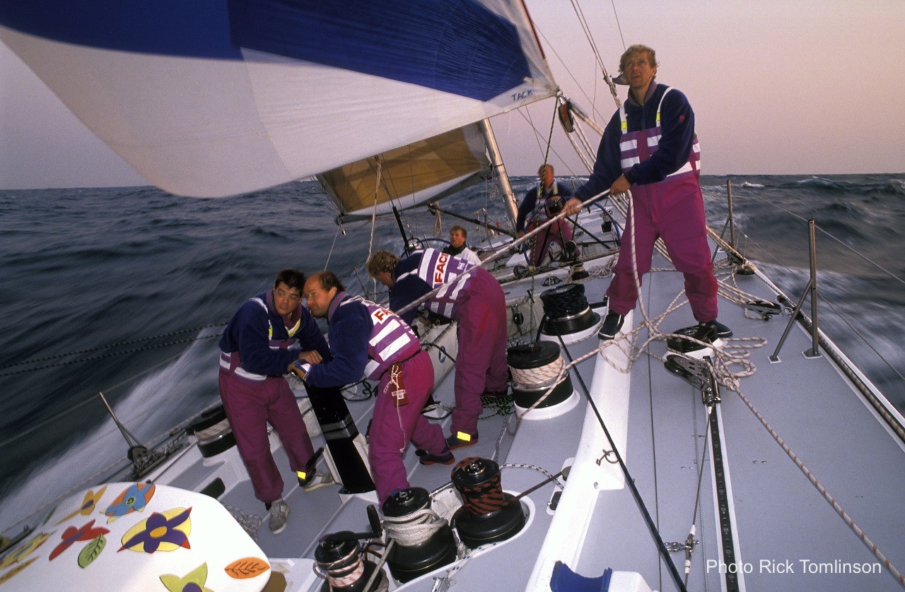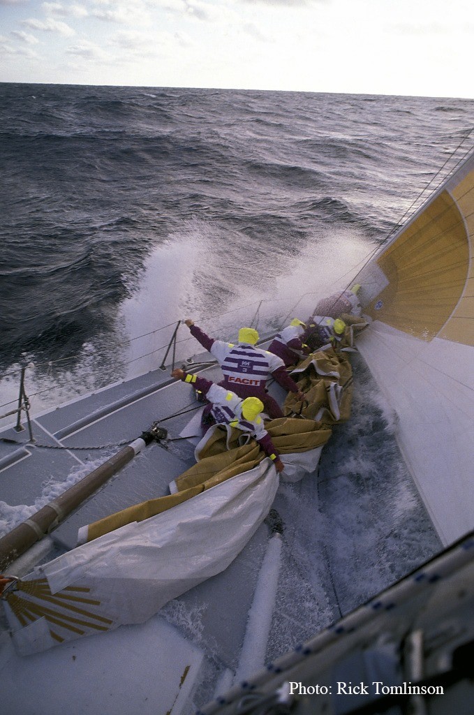 Ett av mina största minnen av att segla på maxisarna i Whitbread var antalet försegelbyten vi tycktes göra. Vi hade tre #1 med oss, light, medium & heavy, en #2, #3, #4, #5 och en stormfock. Förutom den som styrde, krävdes det att alla i samma vakt kom upp på fördäck för att genomföra ett segelbyte och sen få ner det gamla seglet, som skulle vikas och fås ner i en orimligt liten segelpåse.