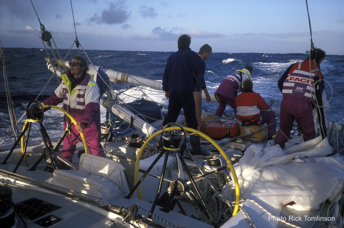 Tyvärr hade vi en liten incident precis efter starten i Auckland när vi seglade in i årskådarfältet och hookade en åskådarbåts masttop på vår mesanmast, och flippade den 90° innan vår mast bröts. Som tur vara klarade sig alla ombord på båda båtarna, en resultatet var att vi fick segla de 6000 sjömilen från Auckland runt Kap Horn till Punta del Este som en slup, med 27 segel ombord, och en mycket större besättning än vad som behövdes.