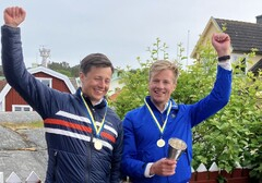 SWE 111, Jacob och Oscar Lundqvist, firar sina 7 poäng och SM-seger.