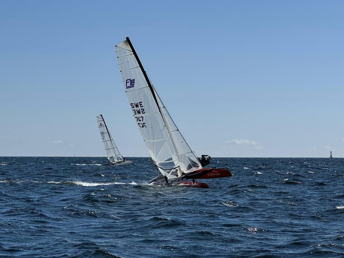 Det svenska mästerskapet i F18 avgjordes i perfekta hårdvindsförhållanden, med sydlig vind och en del vågor. Under de flesta racen blåste det 9-12 m/s. Trots att sista dagens seglingar blåste inne lyckades man genomföra totalt åtta race. Jacob och Oscar Lundqvist vann samtliga.