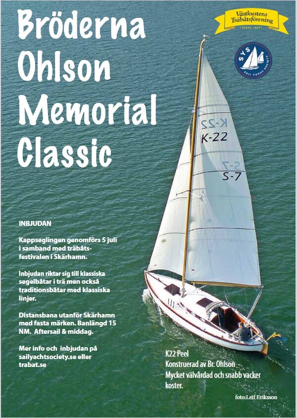 Lördagen den 5 juli anordnar SYS kappsegling tillsammans med Västkustens Träbåtsförening. Denna helg pågår den traditionella Veteran­båts­festivalen i Skärhamn som nu utökas med en kappsegling.