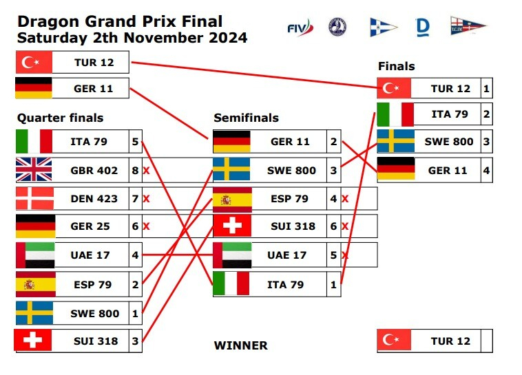 In till Finaldagarna med totalt 20 båtar kvalade tre svenska båtar in; Miss Behavior (SWE 800), Pilsner (SWE 409) och Nono (SWE 416). Fredagen den 1 november seglades tre race. Med en niondeplats tog sig Miss Behavior vidare till lördagens kvartsfinalsegling, medan Pilsner och Nono hamnade under kvalsträcket med en elfte- respektive trettondeplats. Miss Behavior seglade bra och tog sig hela vägen till finalen där de slutade på en hedrande bronsplats. Segrande ur leken gick Provezza Dragon (TUR 12). Det turkiska laget fick därmed ta emot den prestigefyllda trofén The Flow.