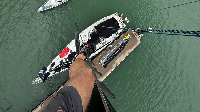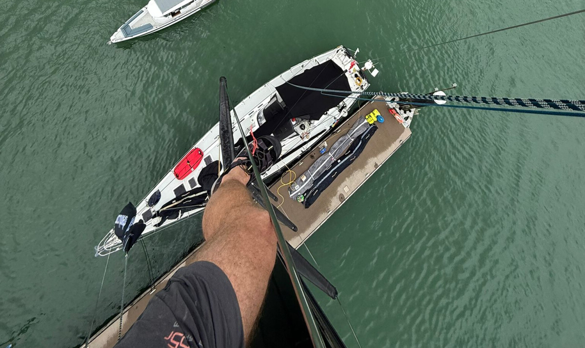Besättningen ombord äventyraren Celeste laddar inför starten av ikoniska Rolex Fastnet Race den 26 juli. Foto: S/Y Celeste of Solent