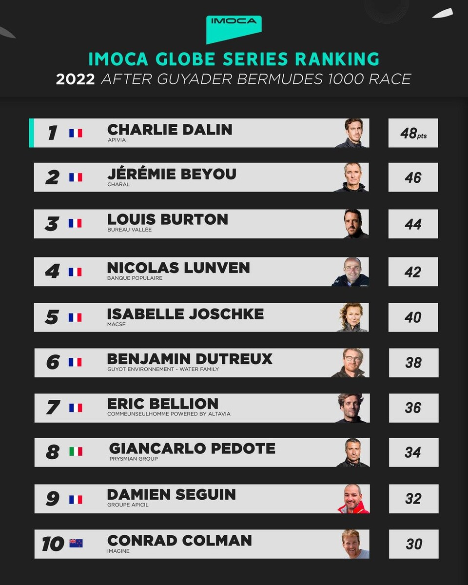 Imoca Globe Series 2022 består av fyra tävlingar. Utöver Guyader Bermudes 1000 Race ingår Vendée Arctique (start 12 juni), Défi Azimut-Lorient Agglomération (start 13 september) och Route du Rhum-Destination Guadeloupe (start 6 november).