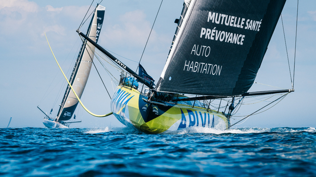 Charlie Dalin skar mållinjen först med sin APIVIA. Foto: IMOCA Globe Series