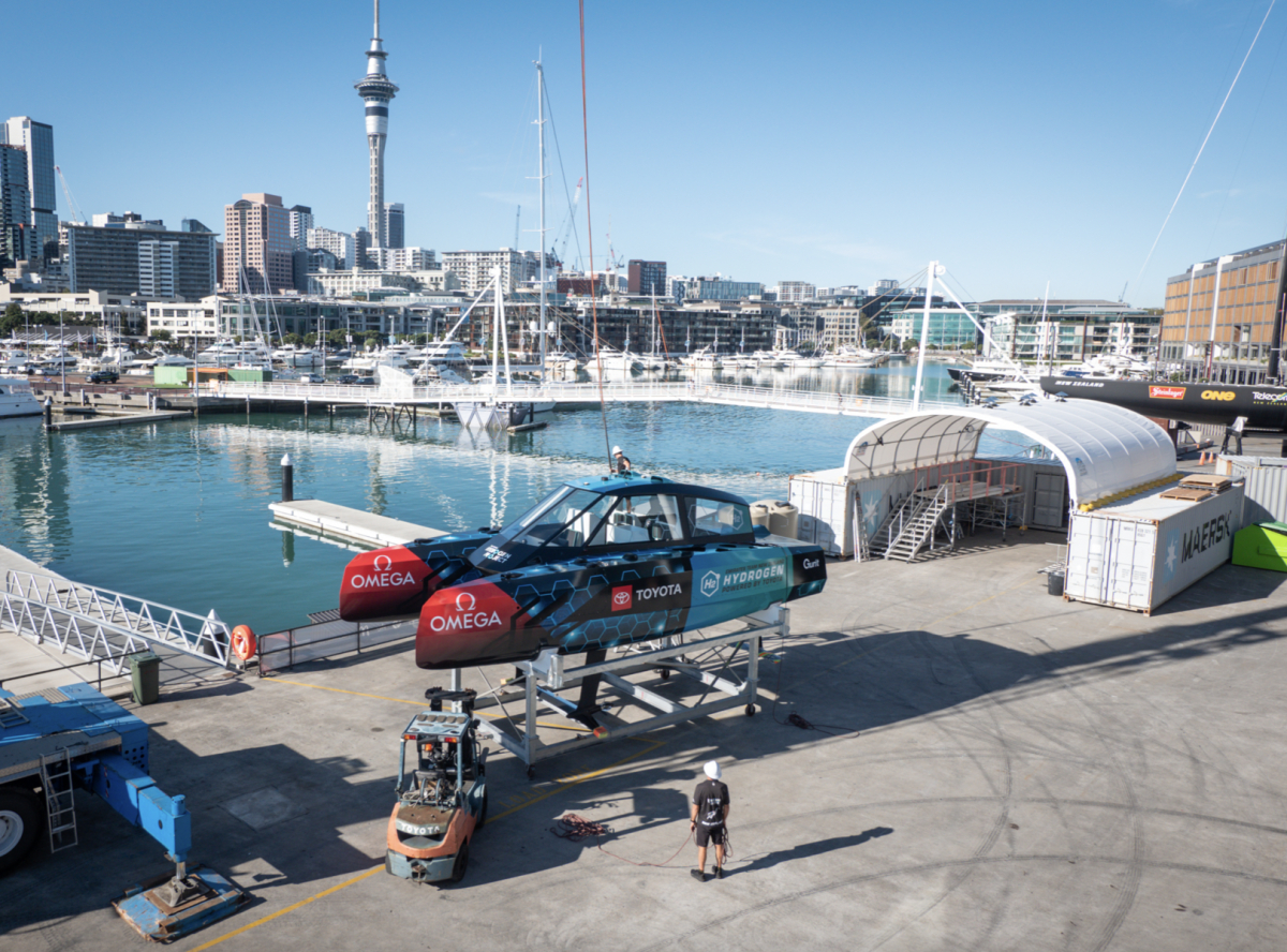 I torsdags sjösatte Emirates Team New Zealand sin första båt i den nya America’s Cup-kampanjen. För ovanlighetens skull var det följebåten som fick stå i rampljuset för en dag.