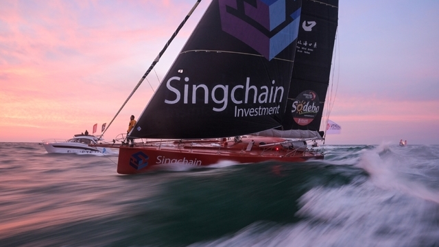Fotografiet ovan visar senaste målgången; Jingkun Xu / Singchain Team Haikou som seglat sin båt jorden runt med – håll nu i dig – en hand. Jingkun är första seglaren från Kina att genomföra racet. Han seglar in på 30:e plats efter 99 dagar, 20 timmar och 6 minuter på banan.