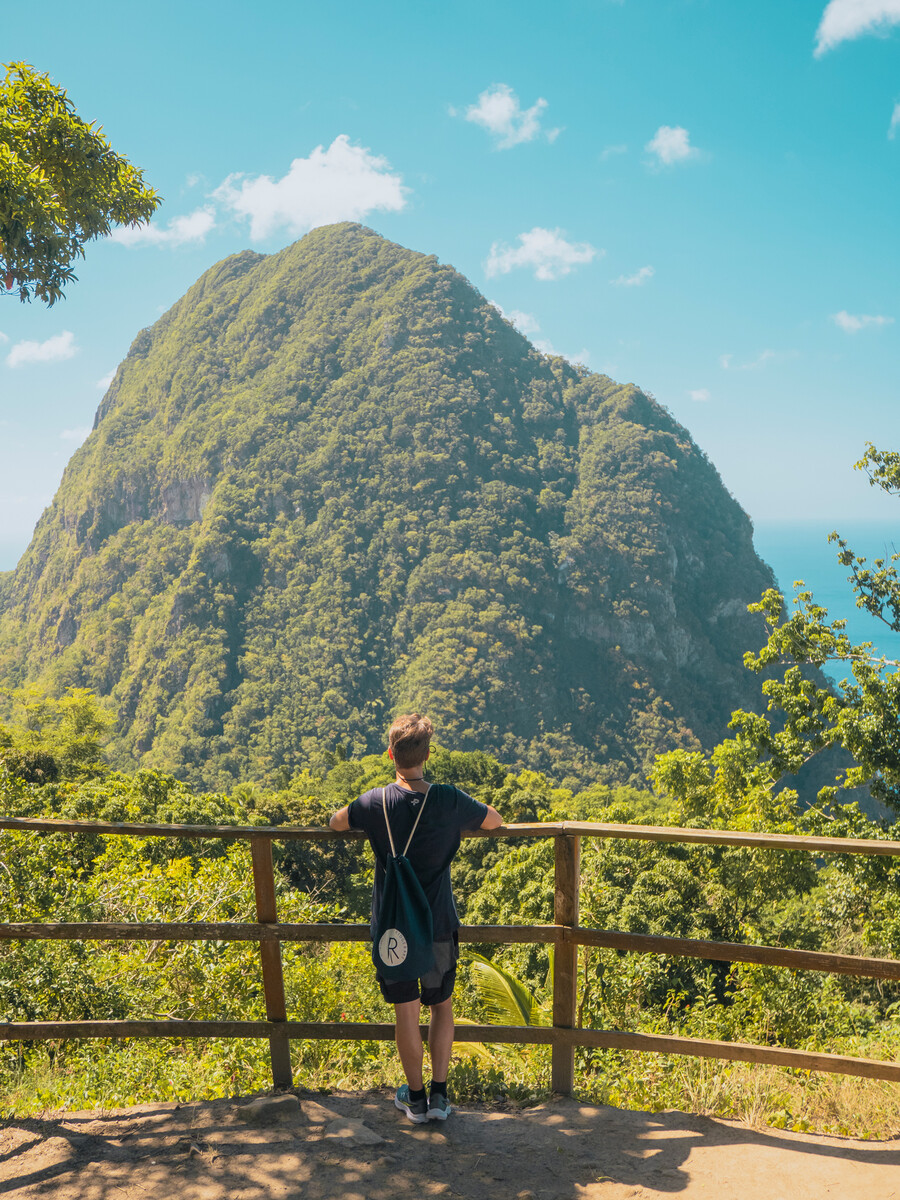 Ett måste när du seglat ner och ankrat utanför Soufriere! The Pitons, två spektakulära vulkaniska bergstoppar och en av de mest ikoniska symbolerna för Saint Lucia är en del av UNESCO:s världsarv. Antingen kan du välja att beskåda bergstopparna lite på avstånd från vandringsstråket Tet Paul Nature Trail. Cirkelvandringen är enkel, tar ungefär 30 minuter att gå och är cirka 2,5km. Eller så kan du vandra upp för Gros Piton tillsammans med en lokal guide. Då bägge bergstopparna är en del av världsarvet får du inte gå upp på egen hand. Vandringen upp på Gros Piton är relativt brant (ändock mer vandring än klättring), cirka 5 kilometer enkel väg och 538 höjdmeter. Stigen är mestadels skyddad i skuggan av träden. När du väl står på toppen är utsikten helt spektakulär.