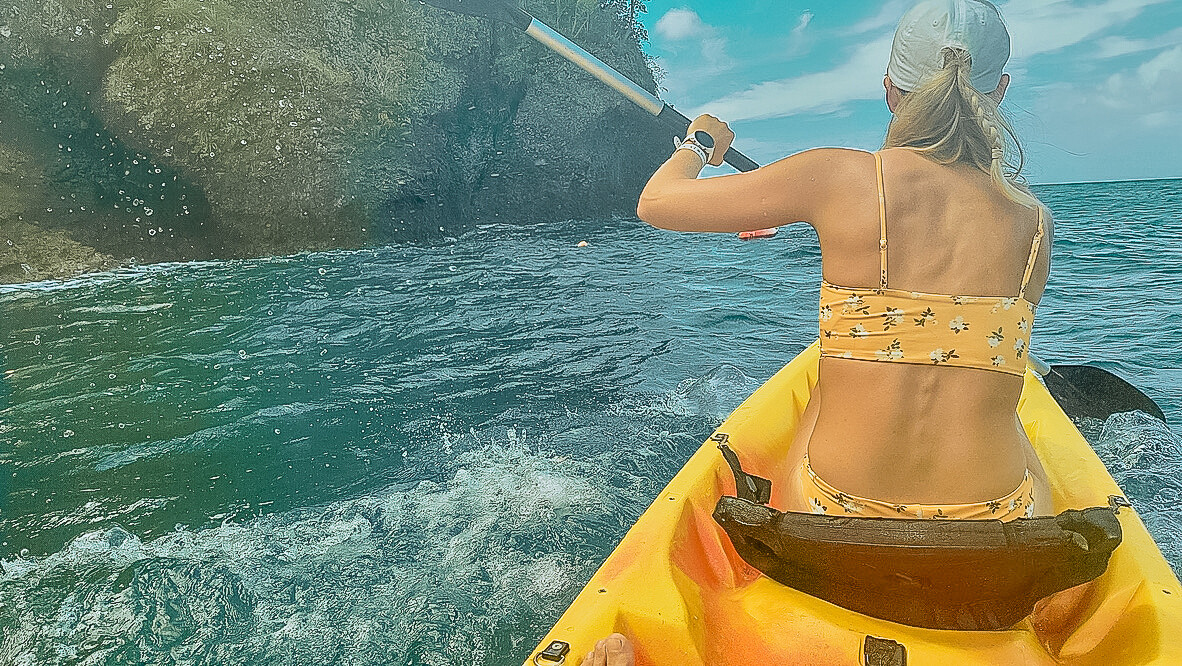 Hyr en öppen kajak i Marigot Bay för att paddla bort till Roseau beach och in i Roseau River. Foto: Michael Holm