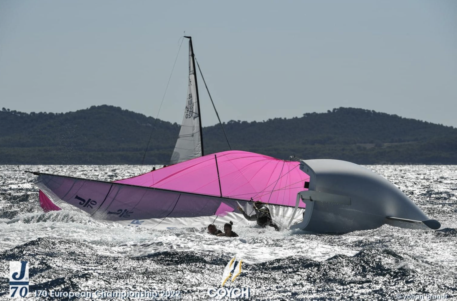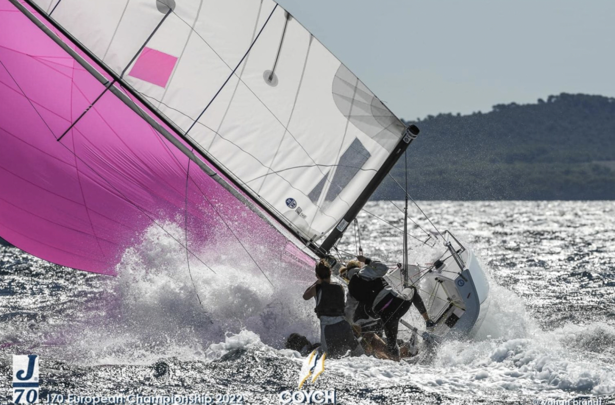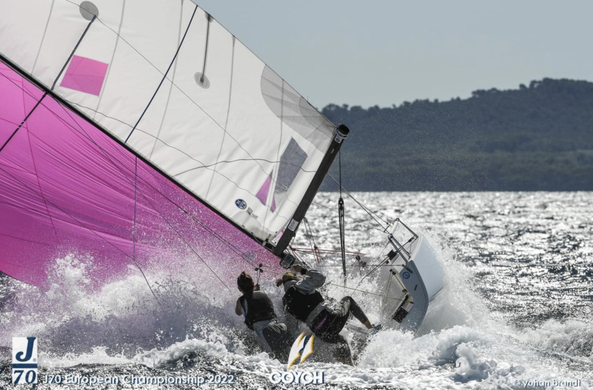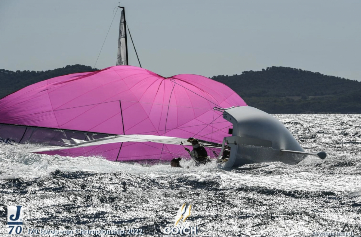 J70-klassen är stor i Sverige och båten används bland annat på Seglingens Mästare och i Allsvenskan. Förra veckan seglades EM i franska Hyèrés och regattan blev en blåsig historia. Några som puschade båtens gränser var den här besättningen. Tack Yohan Brandt för de fina  fotografierna.