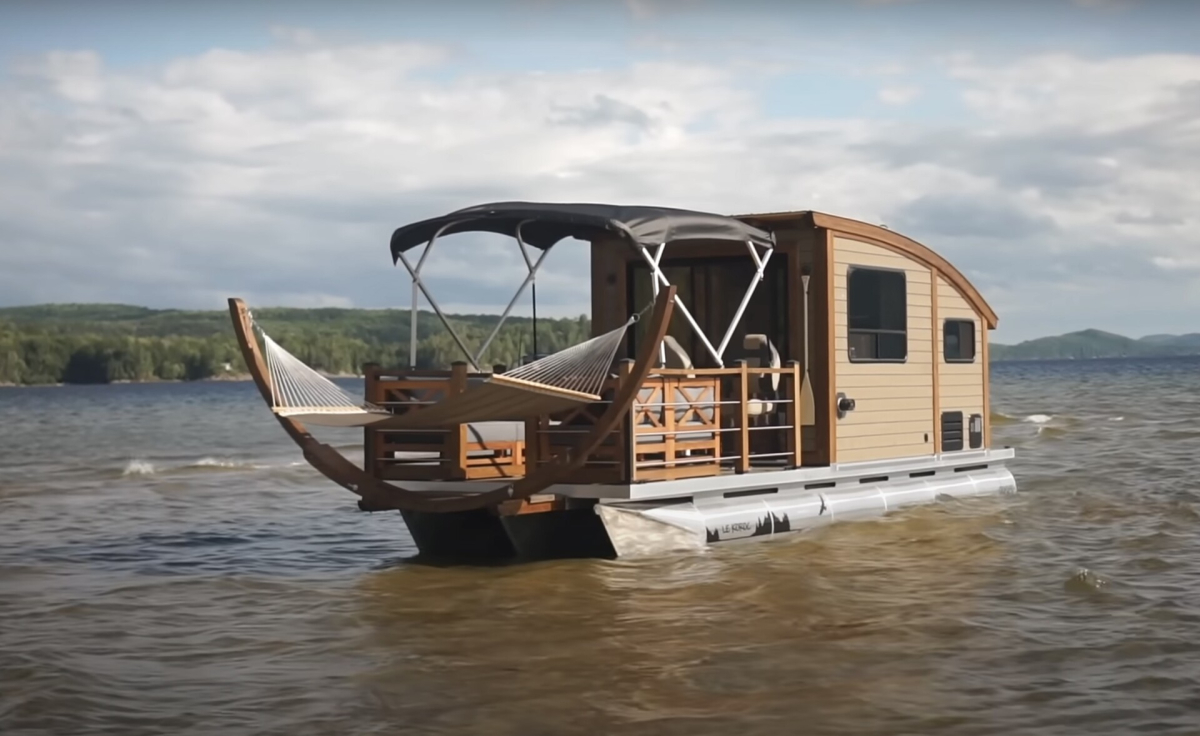 Koroc V är byggd för hand av Richard från Daigno i Quebec. Den har ett massivt däck med soffor, en dinett (typisk term för sittgrupp eller matplats på husbilsspråk) och en hängmatta som hänger över vattnet, samt en bimini för soliga dagar. Inomhus finns ett kök, badrum, matbord och en matplats med soffor som kan göras om till en större säng.