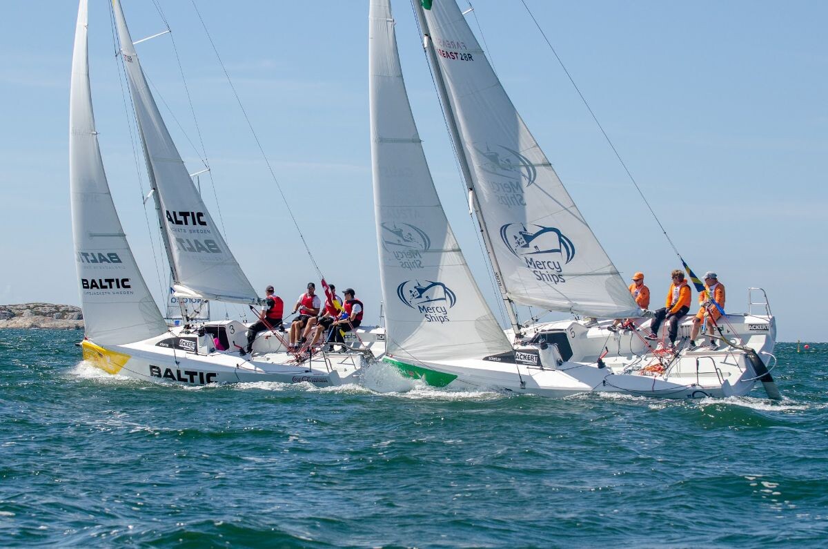 Under eftermiddagen fick vi välkomna damerna in på banan i Nordea Women’s Trophy där grundomgången inleddes mellan 4 av de 6 damlag som ska möta varandra under helgen. Bäst resultat från dagens seglingar har de rutinerade nederländskorna med Renée Groeneveld bakom rodret som kammade hem samtliga vinster. Imorgon ansluter de två sista damlagen, direkt från dam-VM; Megan Thomson (NZL) och Anna Östlings WINGS (SWE) som igår seglar VM-final i Danmark. WINGS fick nöja sig med silverpengen den gången, men känner vi tjejerna rätt kommer de revanschsugna till Marstrand.