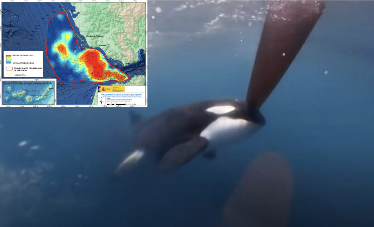 Ett okänt antal späckhuggare skall upprepade gånger ha rammat segelbåten Alboran Cognac (49 fot). Händelsen utspelade sig i söndags morse på marockanskt vatten vid södra inloppet av Gibraltarsundet. De två personerna som befann sig ombord räddades av närliggande fartyg. Så småningom sjönk båten.
