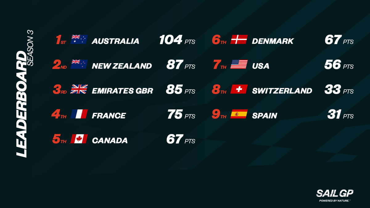 Som vanligt fick lagen inte ta med sig några fördelar in i finalen, men Australiens självförtroende var sannolikt på topp efter att ha tagit tre spikar och vunnit säsongens sista deltävling. Laget tog omedelbart greppet om tävlingen, dels genom att ställa till det för britterna i förstarten, dels genom att diktera ytorna på banan. Taktiken var aggressiv och australiensarna dominerade under större delen av racet. Den största dramatiken var när Australien ramlade av foilsen under näst sista banbenet och nya Zeeländarna kunde knappa in på avståndet på slutspurten. Det var nära, men slutade trots allt till Australiens fördel. Sammandrag från finaldagen samt slutresultatet för säsong 3 hittar du längre ner.