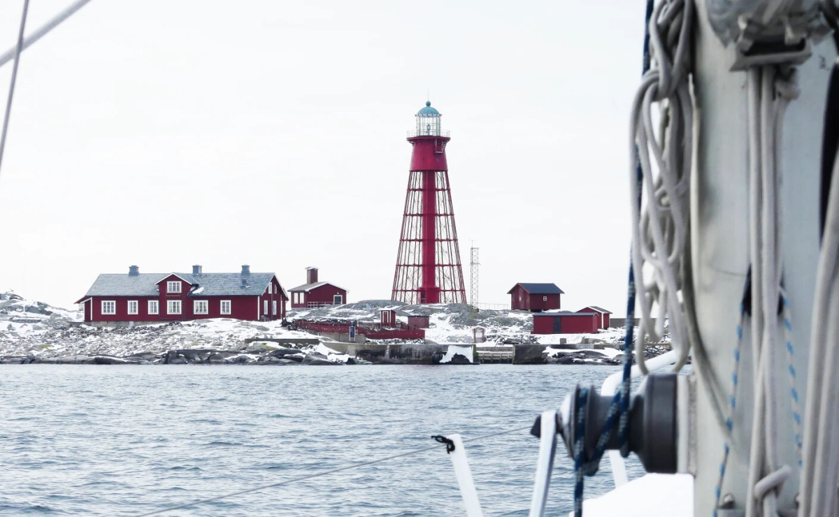 Skärgården ligger öde och karg. En rosa himmel börjar skymma och små små snöflingor singlar sakta ner i ett iskallt mörkt vatten. Det sista man tänker på under december månads korta dagar är troligen att segla. Men även om termometern visar minusgrader behöver det inte betyda att seglingssäsongen är över.