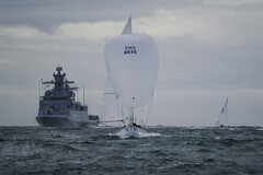 Dag två fortsatte med mer utmanande väderförhållanden och 20 knop vindstyrka, dålig sikt och fuktiga förhållanden. Detta skapade obekväma, men spännande tävlingsförhållanden på onsdagen för seglarna och tävlingsledningen. En hel del team var lite väl heta på gröten i race tre och drog på sig “black flag” för tjuvstart, vilket ger dyra poäng för totala resultatet. Team Front Runner seglade stabilt och blev 11:a och 15:e.