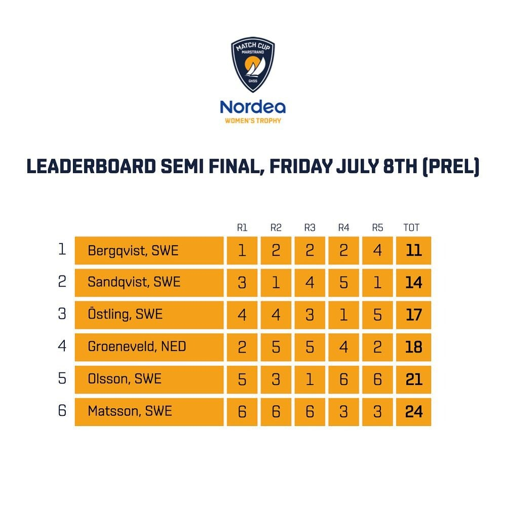 Efter gårdagen står det nu klart vilka fyra lag som går vidare till final. I Nordea Womens Trophy ser vi Bergqvist, Sandqvist, Östling och Groeneveld (enda utländska besättningen) med besättningar. Finalen av Childhood Match Cup avgörs mellan Dahlberg (enda svenska besättningen), Gilmour, Bernaz och Poole. Fullständiga resultattavlor från gårdagens semi hittar du längst ner.