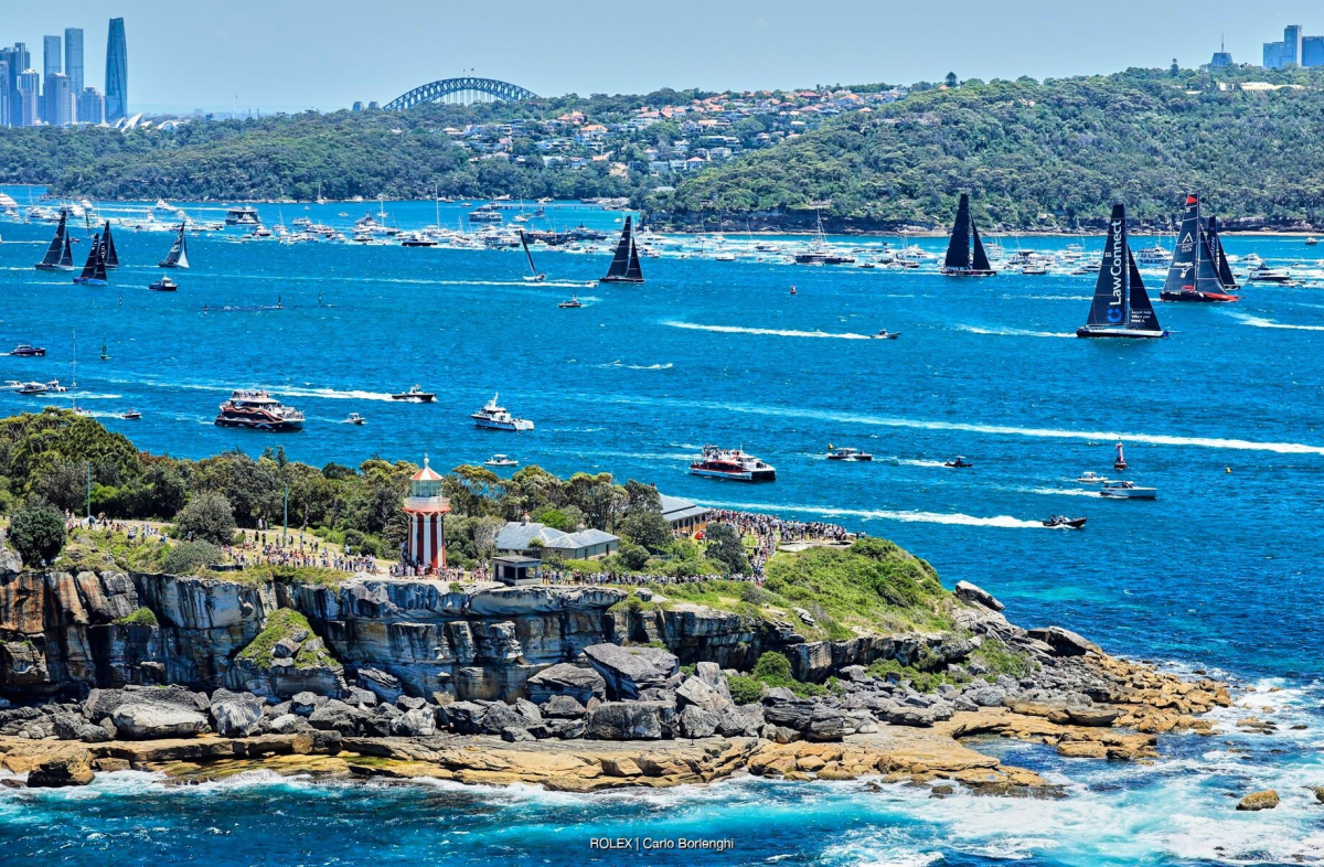 Delar av flottan på väg mot Sydney Heads. Foto: ROLEX / Carlo Borlenghi
