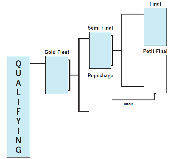 Nytt för dett EM är att ledaren i brons och silver varje dag flyttas upp en grupp och går in på samma poäng som sista båt i gruppen ovanför. Alla seglarna har alltså fortfarande chansen att vinna även om man inte lyckas kvala in till guld-final efter de två första dagarna. På söndag eftermiddag är förhoppningsvis europamästarna korade och för den som redan nu vill sätta sig in i hur finalseglingarna kommer genomföras finns länk nedan.
