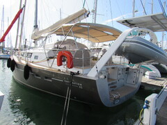 Däcket är en kombination av stilrent och funktionellt. De breda sidopassagerna, klädda med kork (speciellt anpassad för marint bruk), skapar en rymlig, men också trygg känsla, speciellt i kombination med den rejäla relingen, ett stort antal grabbräcken inklusive ditona runt masten. Den unika designen av rufftaket sticker ut en bra bit vilket skapar en skön markiseffekt, speciellt välkommen i tropikerna. Taket sträcker sig vidare akterut, förbi ingången (det är en av få större detaljer som är tillverkad i glasfiber) och ger ett naturligt väderskydd för vakten. Med multifunktionsdisplayen på 12 tum har man full koll på läget härifrån. Dörren till salongen är vattentät (med fem lås). Sittbrunnslayouten är designad med små besättningar i åtanke. Man har valt dubbla roder och rattar för bättre grepp vid hög sjö, samt två elektriska vinschar för att sköta trimmet. Däverten är hög, vilket gör att man kan ha jollen hängande även vid kraftigare sjögång. Den utgör också en utmärkt yta för montering av solpaneler, vindgenerator och antenner.