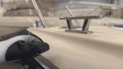 Du börjar med att välja en sida som ser inbjudande ut. Håll strängen spänd och börja såga ett spår mellan däck och utrustnignen som skall bort. Använd handskar. Hacket fungerar utmärkt för i princip allt som är monterat med Sikaflex som vinschar, sidofönster (dock ej luckor) och annat smått och gott. Rengör med etikettborttagare.