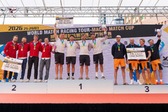 Team Liros och Berntsson Sailing Team på pallen i Macao. Foto: Ian Roman / WMRT