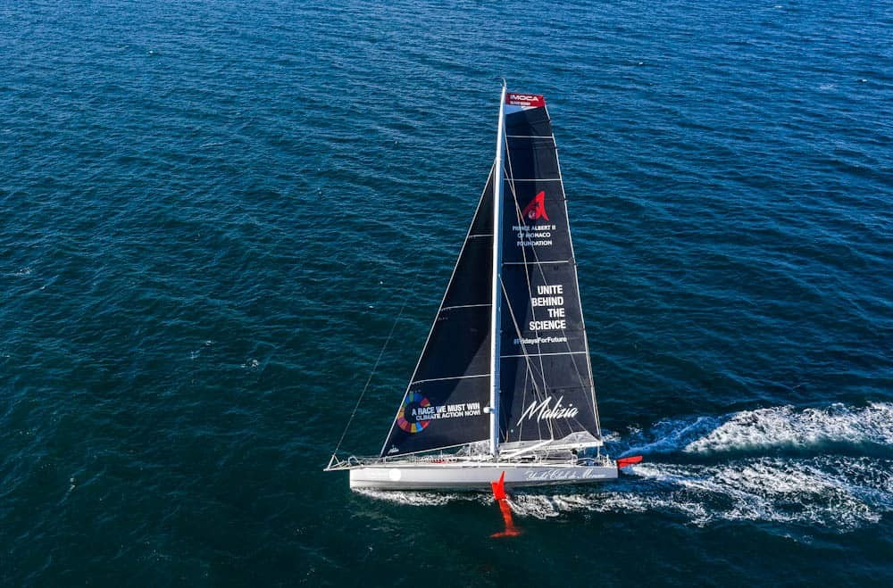 De hon ska segla över Atlanten med är den tyske offshoreseglaren Boris Hermann och Pierre Casiraghi, son till prinsessan Caroline av Monaco. Och båten, som är döpt till Malizia efter fursteätten i Monacos anfader Francesco Grimaldi som seglade över från Genua 1297 och som kallades ”La Malizia”, är en första generationens IMOCA 60 med foils.