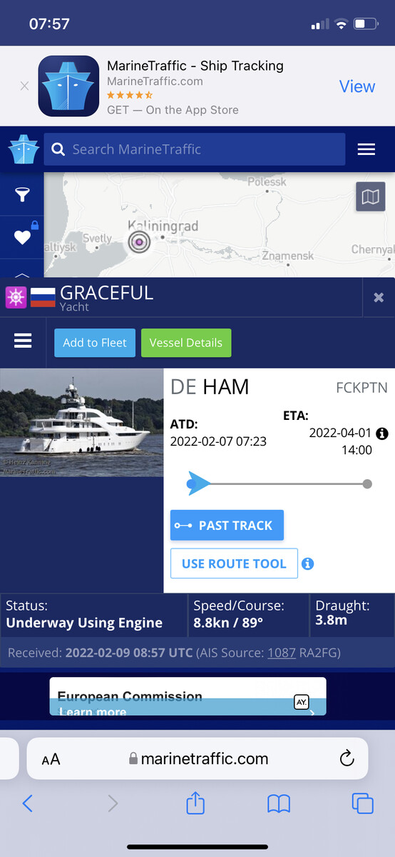 I klippet nedan lämnar "FCKPTN" Tyskland. Yachten befinner sig nu strax utanför Kaliningrad enligt Marine Traffic.