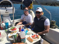 Man fick också testa på sina navigationskunskaper, innan man lade till för lunch. Maten inmundigades vid en mysig liten ö, men inte vilken ö som helst: enligt instruktören Deniz ska drottning Kleopatra fattat tycke för, och bosatt sig på ön. Vi kan inte intyga sanningshalten i historien, men vi avstår att ifrågasätta saken då det gör lunchen mer exotisk.