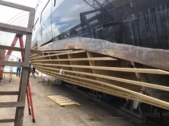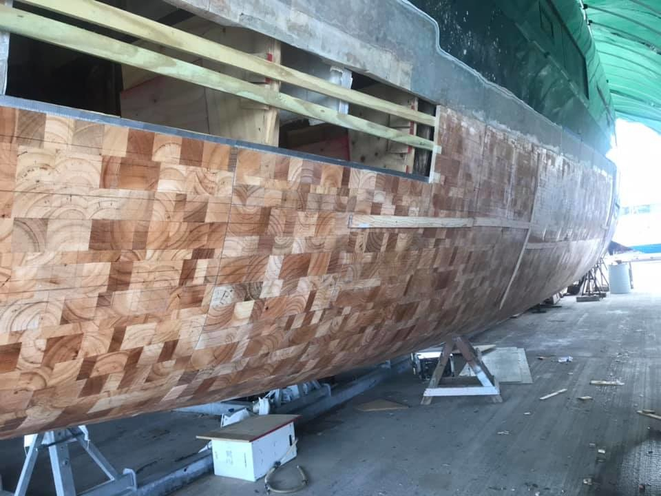 De hade fel. Reparationerna går bra och det skadade skrovet börjar ta form. Första filmen visar hur katamaranen såg ut innan kraschen, andra filmen spelades in under incidenten och bilderna visar hur båten ser ut idag.