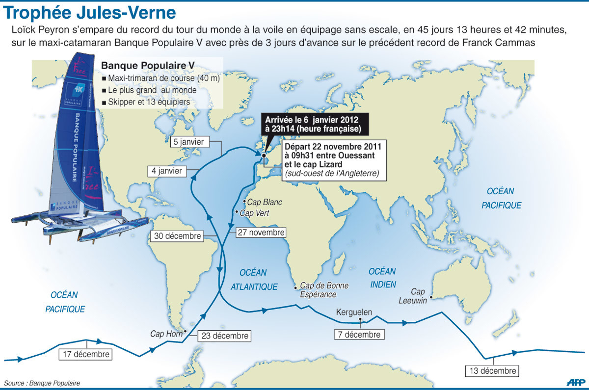 Den förste att lyckas var Bruno Peyron som 1993 tog sig runt jorden på 79 dagar, 6 timmar, 15 minuter och 56 sekunder och den som tilldelas priset har kvar det till någon slår hens rekord.