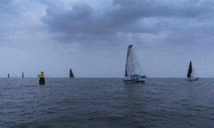 Starten av Sandhamn Open gick i lättvind och regn. Foto Sofia Berglund