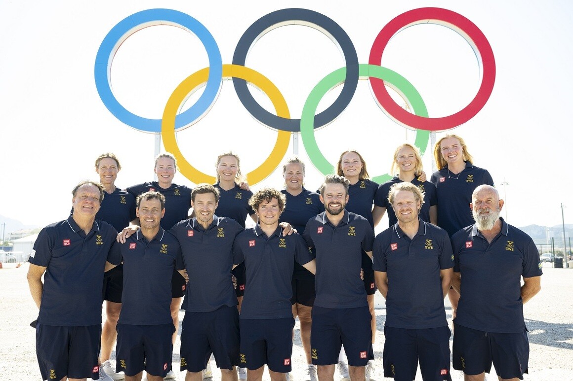 Här är teamet som under ledning av förbundskapten Magnus Grävare bidragit stort till våra två OS-medaljer; Alberte Dahlberg/coach 470, Victor Bergström/coach FX, Jesper Stålheim/coach ILCA6, Jez Fanstone/coach Nacra/iQFOiL, Igor Marenic/coach 470, Pelle Lindius/kock, Pernilla Hansson/kock, Anna Ek/fysioterapeut, Alessandro Pezzoli/meterolog, Laura Marimon/coach/teknisk expert/race analyst, Otto Hamel/coach/tekniskt ansvarig. Claes Lundin/regler är ej med på bild.