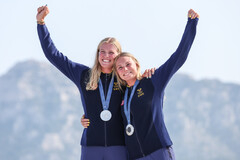 Vilma Bobeck och Rebecca Netzler. Foto: World Sailing