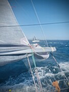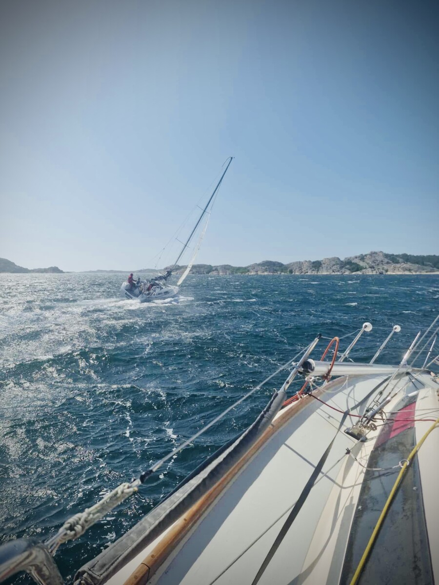 Bohusracet 2025 – när vi kryssar ut på Stigfjorden i ordentligt hård vind.