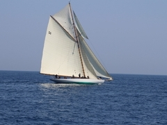 Men först med att ta hem pokalen var faktiskt förra årets vinnare av Voiles d’Antibes, R15 Mariska, som knep den år 1923