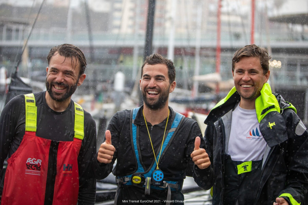 Tanguy Bouroullec, Fabio Muzzolini och Pierre Le Roy. Foto: Mini Transat EuroChef
