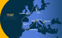 Banan löper genom Östersjön, Nordsjön och Engelska kanalen, Atlanten och Medelhavets hela vägen till Adriatiska havet (se karta ovan). Så här långt har sex hamnstopp annonserats.
