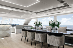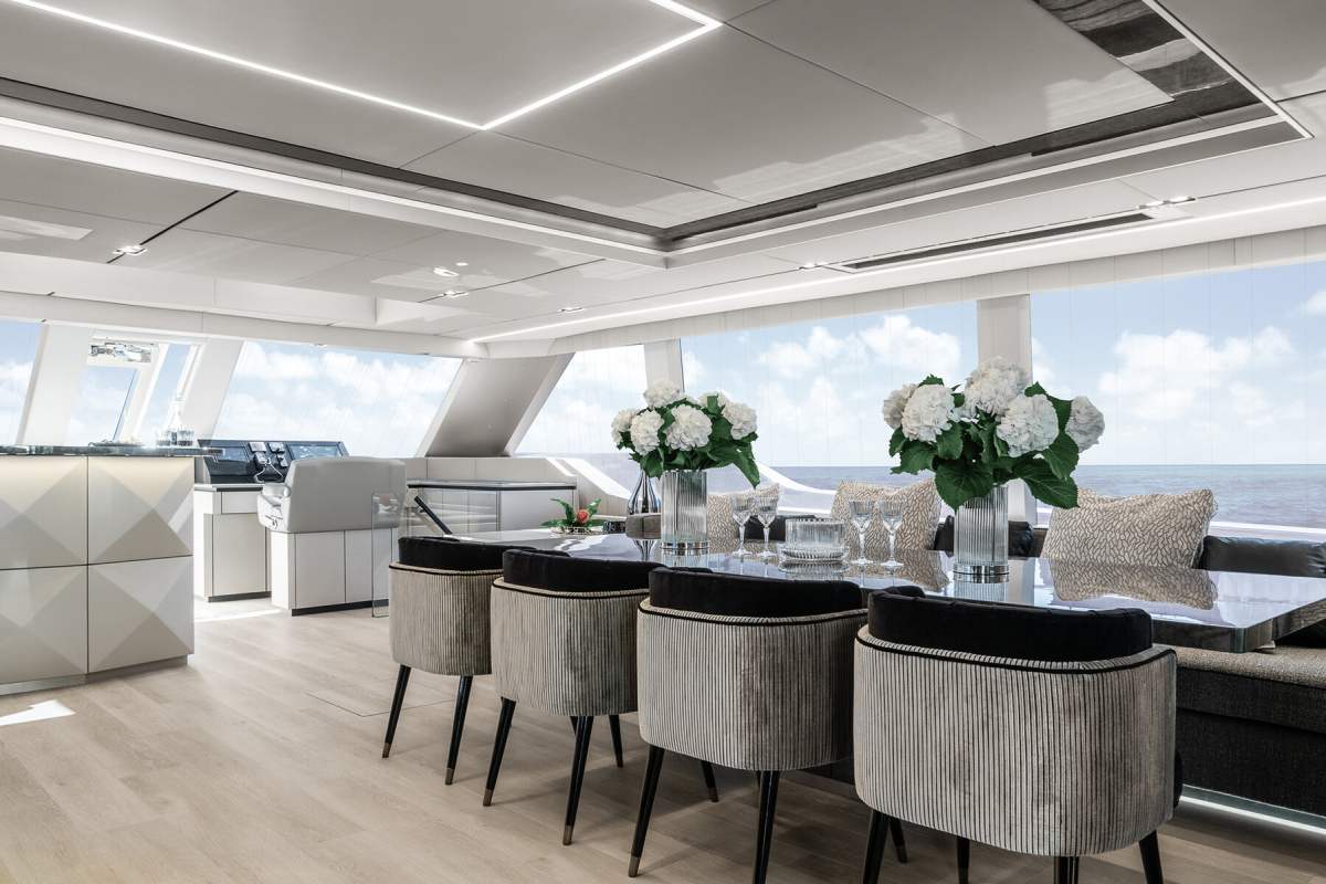 I motiveringen nämns bland annat båtens unika karaktär. Stilen är minimalistisk och tonerna neutrala vilket bryts av med detaljer i metall. Yachten mäter 23,95 x 12 meter och är anpassad för åtta personer.