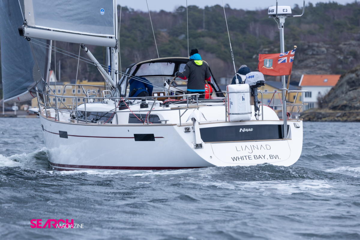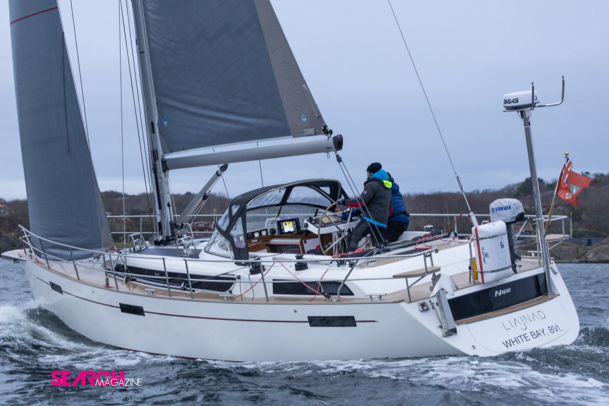 Båten heter LIAJNAD – Life is a journey, not a destination. Den är väl inkörd med närmare 2800 seglade sjömil i skandinaviska vatten. Vi seglar på vattnet utanför Ellös, inom- och utomskärs, i friska temperaturer, lätta vindar och platt vatten samt grov sjö med byar på uppemot 16 m/s. Med oss ombord är Fredrik Malmqvist, VD för Najad Yachts och proffset Jimmy Hellberg.